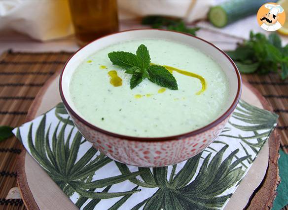 To refresh yourself at the start of the meal, nothing beats a good cold soup! Today, cucumber takes center stage, paired with mint and yogurt for an extra fresh and flavorful result. As for difficulty, it couldn't be simpler. Just put all your ingredients in a blender, blend it all together, and... that's it! Serve it in small glasses for an appetizer ;-)